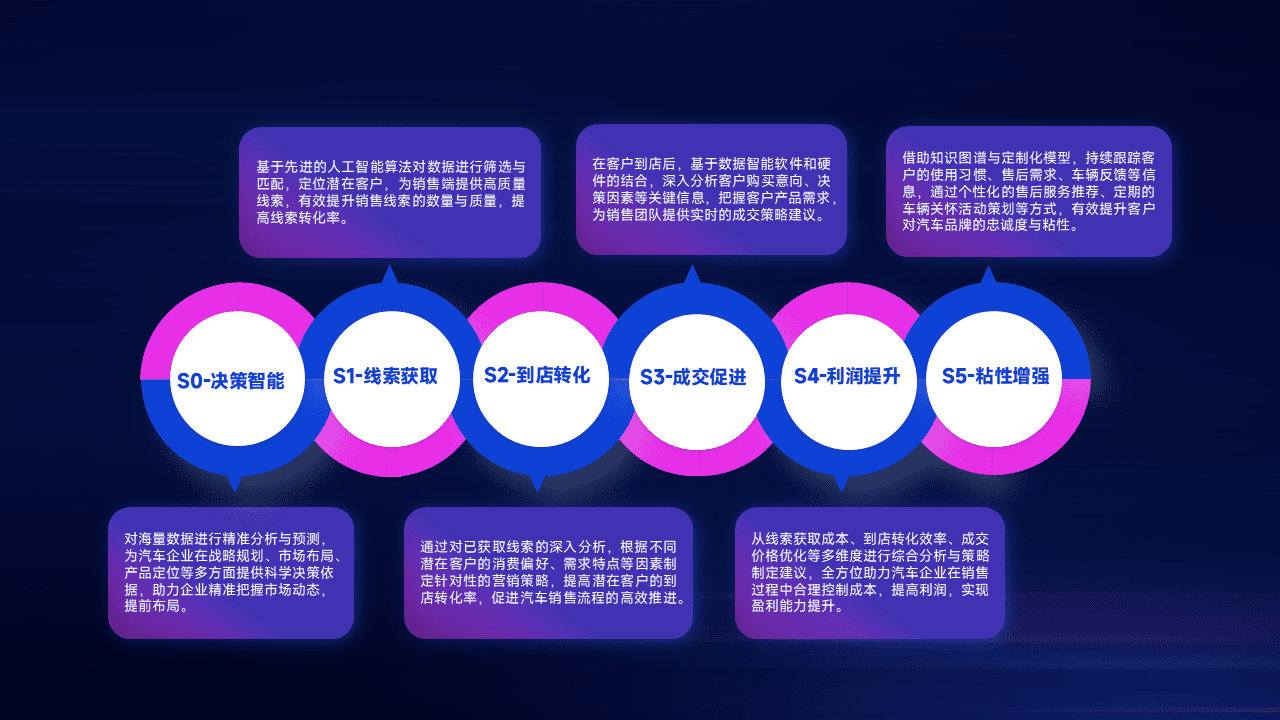 通过拓宽潜在客户来源、、优化线索分配并提高到店转化率,,以增强销售效率。。同时,,利用线索数据不断优化分析模型,,,,有效提升转化率,,,,扩大营销影响力。。。